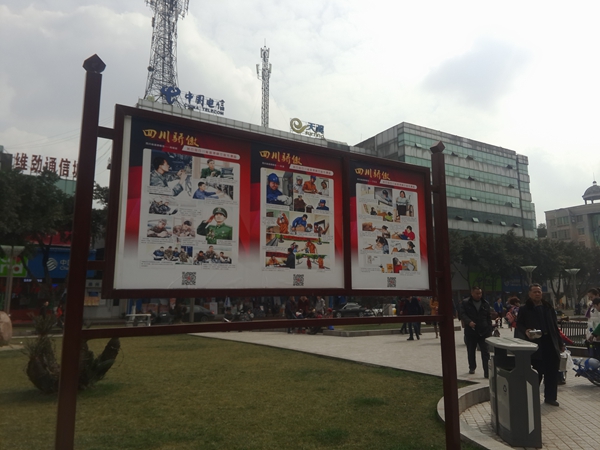 崇州市文明辦在中心廣場(chǎng)、商業(yè)街區(qū)等人流密集地,通過設(shè)立戶外大型廣告,LED電子顯示屏、路名牌燈箱廣告等形式,刊播四川省道德模范宣傳畫;充分發(fā)揮崇州公眾信息網(wǎng)、政務(wù)微博等新媒體傳播快捷、覆蓋廣泛的優(yōu)勢(shì),對(duì)“四川驕傲.第四屆四川省道德模范宣傳漫畫”中的道德模范進(jìn)行了全面展示和廣泛宣傳;在機(jī)關(guān)、企事業(yè)單位辦公區(qū)域,街道社區(qū)等,張貼統(tǒng)一制作的宣傳漫畫,廣泛宣傳道德模范先進(jìn)事跡。