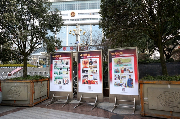 金牛區(qū)和諧廣場(chǎng)一角展覽“四川驕傲”宣傳漫畫