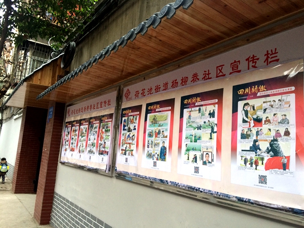 金牛區(qū)荷花池街道楊柳巷社區(qū)宣傳欄刊登“四川驕傲”漫畫
