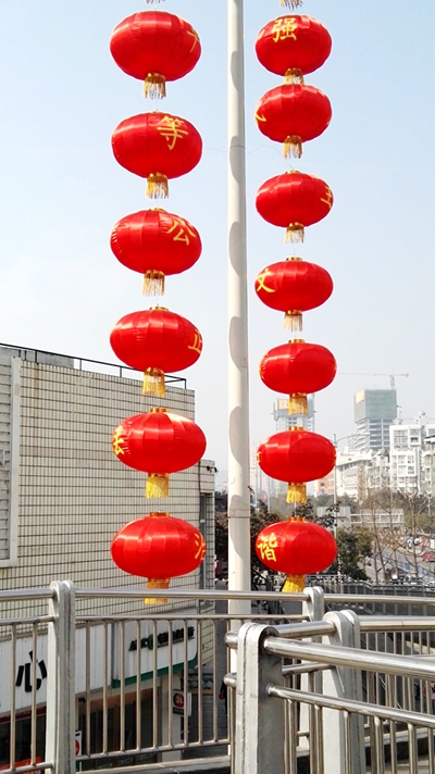 街頭掛上以社會(huì)主義核心價(jià)值觀為主題的燈籠。