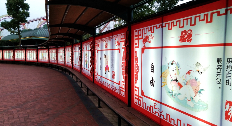 溫江大廟會(huì),《核心價(jià)值觀24字》燈組墻,恢弘大氣。