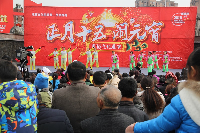 2月22日,邛崍市河濱廣場(chǎng)熱鬧非凡。上午10點(diǎn),邛崍市“2016新年文化藝術(shù)月”系列活動(dòng)之“我們的節(jié)日·元宵”主題活動(dòng)在此舉行。粗略估計(jì),現(xiàn)場(chǎng)至少近千人參加活動(dòng)。