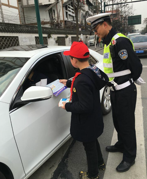 小志愿者們向行人發(fā)放交通安全宣傳資料