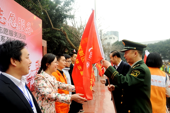 為十一支特色志愿服務(wù)隊(duì)授旗