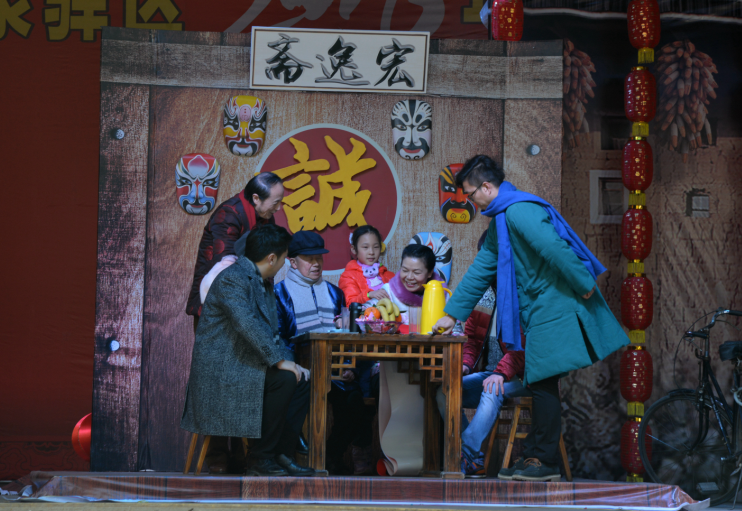 一個(gè)舞臺(tái),演繹三個(gè)不同家庭的“家長(zhǎng)里短”;一部情景劇,充滿戲劇張力引人入勝,把家風(fēng)家訓(xùn)句句傳遞……今年春節(jié)期間,在成都洛帶古鎮(zhèn)五鳳廣場(chǎng)萬(wàn)年臺(tái)上,情景劇《別樣年味·家風(fēng)年》的上演,給古鎮(zhèn)增添不同以往的春節(jié)氣氛。