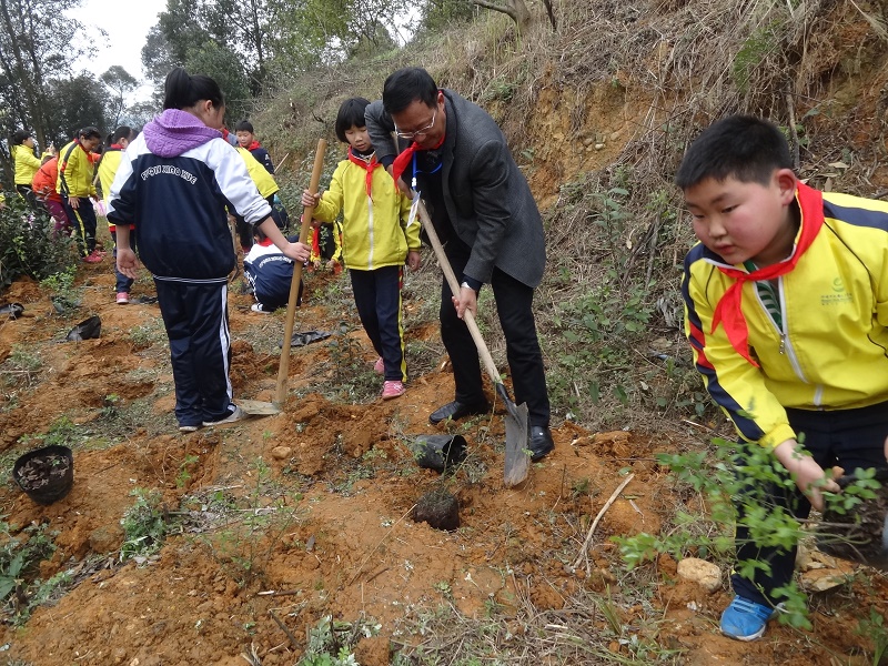 白鶴九年制學(xué)校鄉(xiāng)村學(xué)校少年宮和撫琴小學(xué)學(xué)生一起植樹