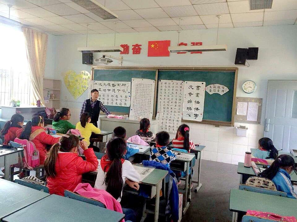 白雙政老師在金興北路小學(xué)指導(dǎo)紅領(lǐng)巾書法小社團(tuán)