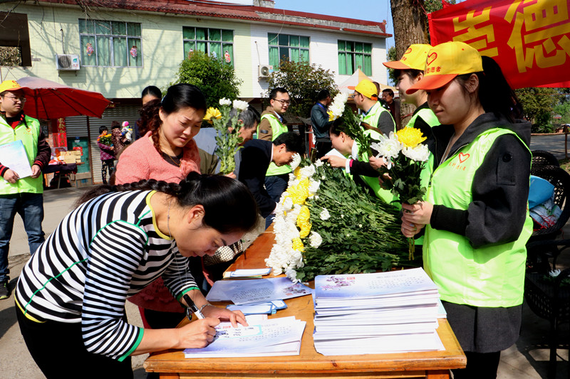 本次活動(dòng)分三個(gè)部分,一是志愿者們勸導(dǎo)前來公墓祭奠的市民通過文明祭祀的方式祭奠,向每位前來祭祀的市民發(fā)放文明祭祀倡議書;二是耐心向市民解釋如何用香蠟、紙錢換取鮮花和“思念寄語(yǔ)”留言卡,市民在看到公墓處的置換活動(dòng)后,自覺的把帶來的鞭炮和紙錢,換成了志愿者們免費(fèi)提供的鮮花、“思念寄語(yǔ)”留言卡片,以低碳生態(tài)的方式追憶逝去的親人;三是志愿者們一起祭拜陵園的老紅軍,緬懷他們的豐功偉績(jī),寄托對(duì)革命先烈的不盡懷念和無限敬仰。