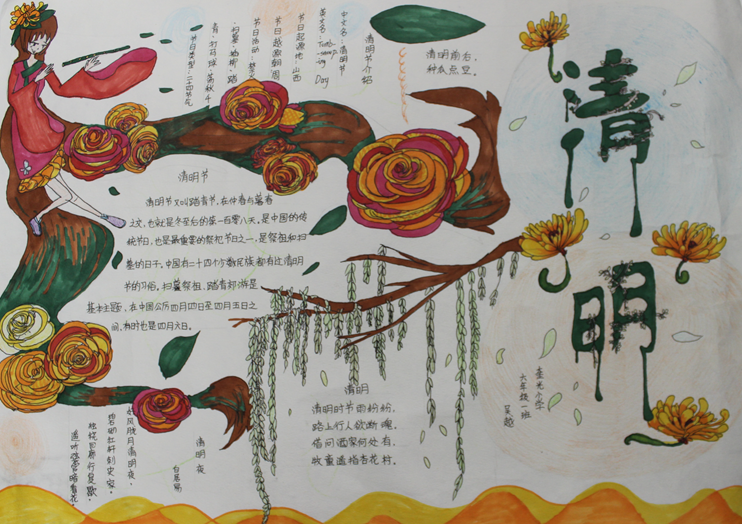 奎光小學(xué)吳越結(jié)合學(xué)校今年開展的感恩于責(zé)任教育,利用清明假期時(shí)間創(chuàng)作了這一幅清明節(jié)小報(bào),他覺得創(chuàng)作的過程就是學(xué)習(xí)的過程,只有動(dòng)手去創(chuàng)作,動(dòng)腦去思考,才能更深入的理解繼承和發(fā)揚(yáng)的意義。
