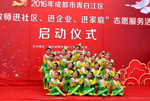 本次志愿服務(wù)活動(dòng)強(qiáng)調(diào)將關(guān)愛(ài)學(xué)生、服務(wù)群眾、惠及民生作為出發(fā)點(diǎn)和落腳點(diǎn),重點(diǎn)實(shí)施“愛(ài)心”、“陽(yáng)光”、“下鄉(xiāng)”、“提質(zhì)”四大工程,確保留守兒童、貧困學(xué)子、家長(zhǎng)群眾共享社會(huì)發(fā)展成果,促進(jìn)社會(huì)和諧發(fā)展。黨員教師志愿者代表在活動(dòng)現(xiàn)場(chǎng)作出志愿服務(wù)承諾,大彎中學(xué)、成都市工程職業(yè)技術(shù)學(xué)校等中小學(xué)為啟動(dòng)儀式帶來(lái)的配樂(lè)詩(shī)朗誦《我的祖國(guó)》、群舞《筍芽尖尖》以及器樂(lè)合奏等精彩節(jié)目傳遞出對(duì)祖國(guó)的熱愛(ài)、對(duì)理想的堅(jiān)守,少年兒童的蓬勃朝氣和青春活力將時(shí)代主旋律和積極向上的正能量傳遞給了在場(chǎng)的每一個(gè)人,贏得了現(xiàn)場(chǎng)觀眾的熱烈掌聲。