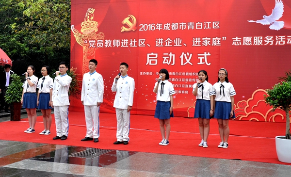 4月8日上午,為充分發(fā)揮全區(qū)黨員教師的先鋒模范作用,把教育服務(wù)的春風(fēng)雨露送進(jìn)社區(qū)、企業(yè)、千家萬(wàn)戶(hù),由青白江區(qū)相關(guān)部門(mén)主辦,青白江先鋒黨員志愿服務(wù)隊(duì)組織開(kāi)展的“黨員教師進(jìn)社區(qū)、進(jìn)企業(yè)、進(jìn)家庭志愿服務(wù)”活動(dòng)啟動(dòng)儀式在城市森林和諧廣場(chǎng)隆重舉行。相關(guān)部門(mén)負(fù)責(zé)人、黨員志愿教師、學(xué)生志愿者近300余人參加了此次儀式。