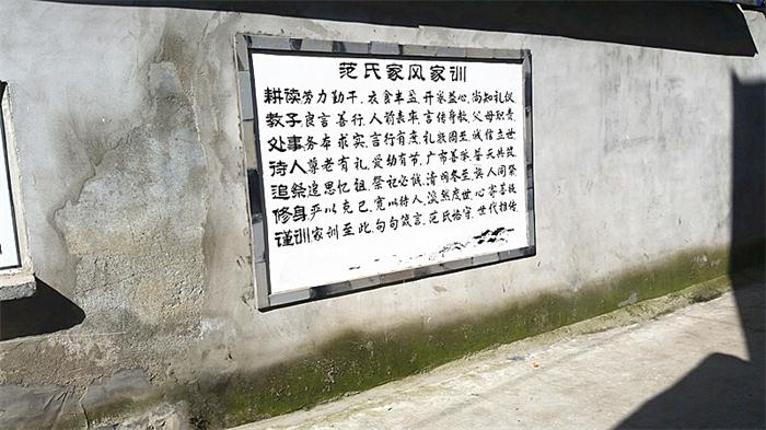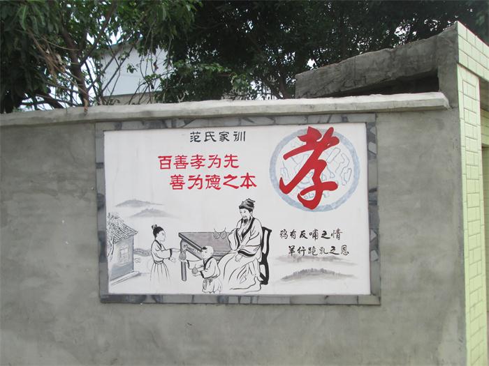 同時(shí),因地制宜,制作了與院落環(huán)境協(xié)調(diào)、美觀的“忠孝文化”“農(nóng)耕文化”和“家風(fēng)家訓(xùn)”的墻畫26幅,并修建2000平方米的群眾文化廣場(chǎng),建白斑鳩孝道茶園1座,讓好家風(fēng)好家訓(xùn)如春風(fēng)化雨滋潤(rùn)心靈、進(jìn)入尋常百姓家中,傳播文明美德。范家大院的范氏家族為范仲淹的后代,他們弘揚(yáng)祖先的傳統(tǒng)美德,啟示教育后人,構(gòu)建和諧社會(huì)。范氏家風(fēng)家訓(xùn)強(qiáng)調(diào)敬老敬賢,孝敬父母,是范氏祖先流傳千百年來的傳家寶,每位范氏家族成員都深刻銘記。