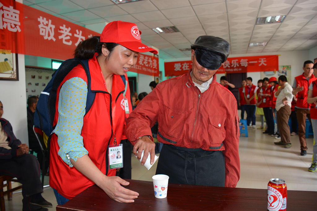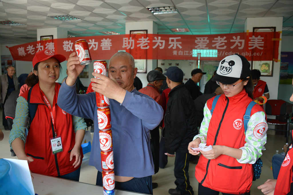 青白江區(qū)義工聯(lián)志愿者們除了為敬老院120余位老人進行生活方面的理發(fā)、剪指甲等常規(guī)服務(wù),還為老人們精心準(zhǔn)備了“你是我的眼”、“南水北調(diào)”“金玉滿堂”等精彩紛呈、趣味橫生的互動游戲。志愿者們不厭其煩地為老人做示范,手把手地教會老人參與各項活動。老人們在游戲的過程中,似乎又恢復(fù)了年輕時的活力、不老的童心,現(xiàn)場此起彼伏的笑聲和掌聲讓寂靜的小院彌漫著濃濃的溫情。隨后無論是參與游戲或者行動不便沒有參與游戲的老人都領(lǐng)到了區(qū)義工聯(lián)贈送的禮物。