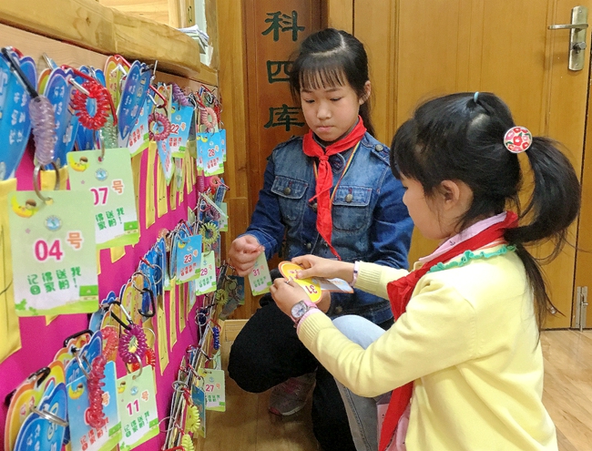 為了孩子們盡快的掌握方法,圖書管理老師不僅手把手教孩子們,堅(jiān)持每周的定期培訓(xùn)。還建立了幫扶指導(dǎo),新進(jìn)的3年級(jí)志愿者,以班級(jí)一一對(duì)應(yīng)由5年級(jí)的老志愿者們當(dāng)小老師協(xié)助練習(xí)。