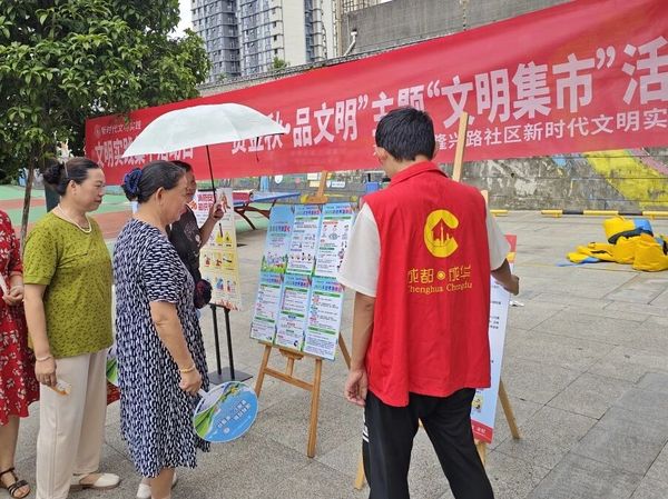 9月13日,龍?zhí)督值缆∨d路社區(qū)新時(shí)代文明實(shí)踐站聯(lián)合成都農(nóng)商銀行龍?zhí)吨新∨d分理處共同舉辦了“賞金秋·品文明”文明集市活動(dòng),現(xiàn)場(chǎng)設(shè)置創(chuàng)意打卡、趣味游戲和科普宣傳三大區(qū)域,吸引了眾多居民熱情參與。