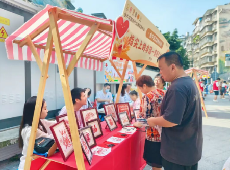 非遺區(qū)堪稱“寶藏之地”:青杠染老師演示疊布與捆布技巧,市民親手體驗(yàn),拆出美麗花紋時(shí)欣喜不已,紛紛拍照留念,扎染產(chǎn)品也迅速成為搶手貨;千工手作老師展示蜀繡技藝,阿姨們學(xué)習(xí)平針繡法,成功繡出第一針時(shí)成就感滿滿;剪紙區(qū)氣氛最為熱烈,曾老師現(xiàn)場(chǎng)剪制小動(dòng)物,孩子們踴躍學(xué)習(xí),歡聲笑語(yǔ)此起彼伏。