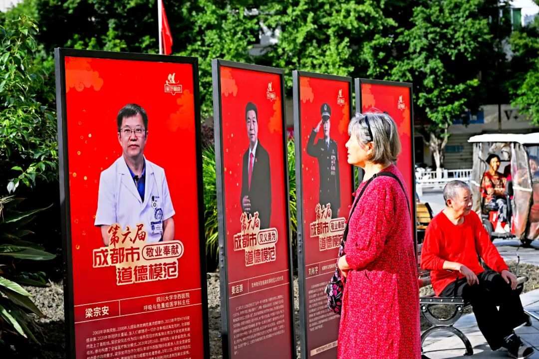 活動現(xiàn)場,“中國好人”梁宗安、“成都市道德模范”馬志惠、“成都好人”卓玉英等典型模范的事跡展板,吸引了眾多群眾駐足觀看。一個個平凡而又偉大的好人故事,展現(xiàn)了身邊好人的善與美。人們仔細閱讀著這些事跡,紛紛表示要向身邊好人學習,主動承擔起對國家、對社會、對他人的責任。