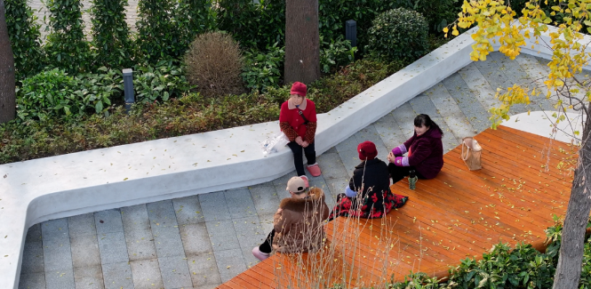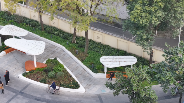 冬日暖陽(yáng)灑在學(xué)苑路口的街角綠地,木色弧形座椅上,幾位老人閑談小憩,接送孩子的家長(zhǎng)駐足等候,錯(cuò)落的灌木與平整的園路相映成趣。誰(shuí)能想到,這片充滿溫馨的“活力點(diǎn)”,不久前還是一片無(wú)人駐足的老舊綠化帶。