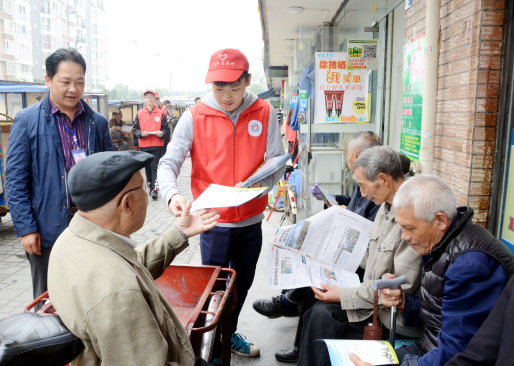 近日,由西航港街道團工委組織的60名志愿者,早早地就來到社區(qū)集合,他們既有成都信息工程大學(xué)的學(xué)生,也有社區(qū)居民,他們要利用居民們買菜回家的有利時機向居民宣傳。