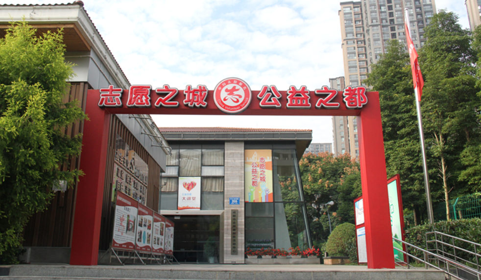 為加快建設成都市“志愿之城,公益之都”的建設,中共成都市委宣傳部、市文明辦建設成都市志愿者服務活動中心,以培育和踐行社會主義核心價值觀為宗旨,大力弘揚“奉獻、友愛、互助、進步”的志愿服務精神,努力將活動中心打造成全市志愿服務的“一窗口、兩基地、兩平臺”。自建成以來,成都市志愿服務活動積極開展各項志愿服務活動,創(chuàng)辦期刊雜志,宣傳志愿服務精神,打造一些列志愿服務品牌,為成都市精神文明建設貢獻力量。 成都市志愿服務活動中心位于成都市錦江區(qū)百日紅西路355號,背靠社會主義核心價值觀主題公園,室內(nèi)外建筑面積共1500平方米,分為上下兩層,內(nèi)設“一廊四區(qū)六室”?!耙焕取奔慈兄驹刚叻展ぷ餍麄髡故鹃L廊,位于活動中心門廊處,采用宣傳欄、LED屏、燈箱、展架、等多種形式進行全面展示。設有志愿服務宣傳展示長廊、志愿服務活動展示區(qū)、志愿服務團隊宣傳展示板、核心價值觀活動展示墻等。